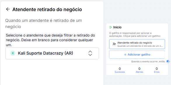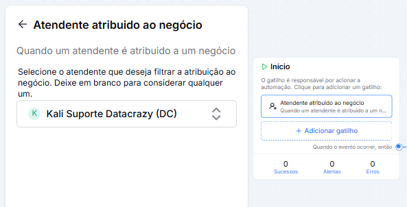 Este gatilho dispara quando um atendente é atribuído ao negócio.