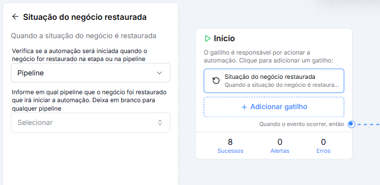 Dica: Combine esse gatilho com condições para personalizar as ações conforme a etapa.