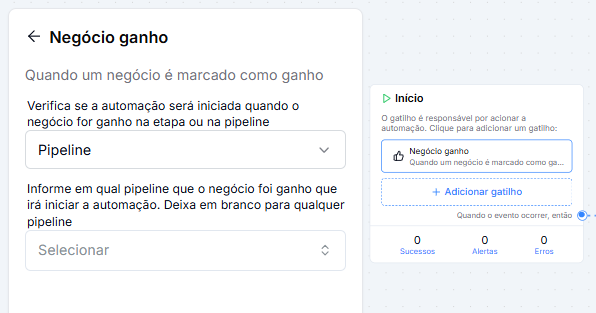 Esta documentação tem como objetivo te guiar no uso dos gatilhos de automação na área de Negócios dentro do seu sistema.