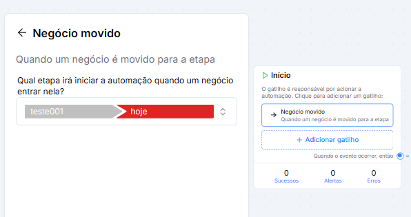 Este gatilho é disparado sempre que um negócio é movido de uma etapa para outra dentro do seu funil (pipeline).