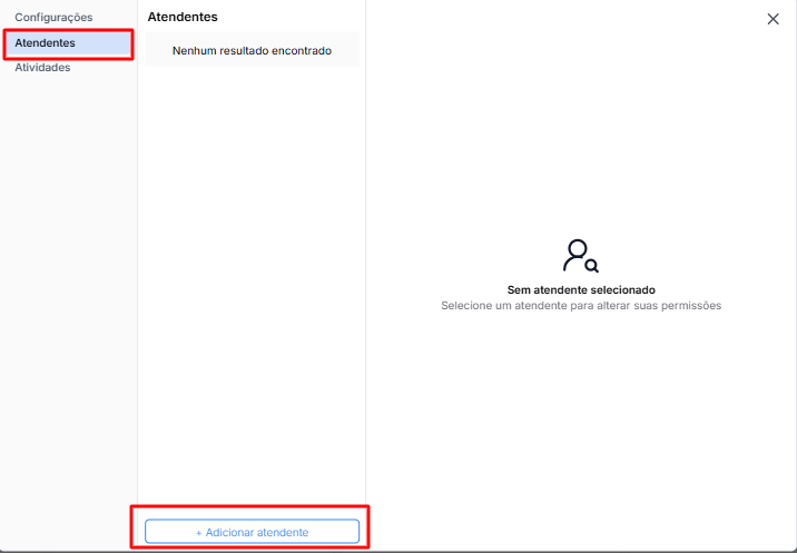 Assim que o atendente for adicionado, as seguintes opções irão aparecer: