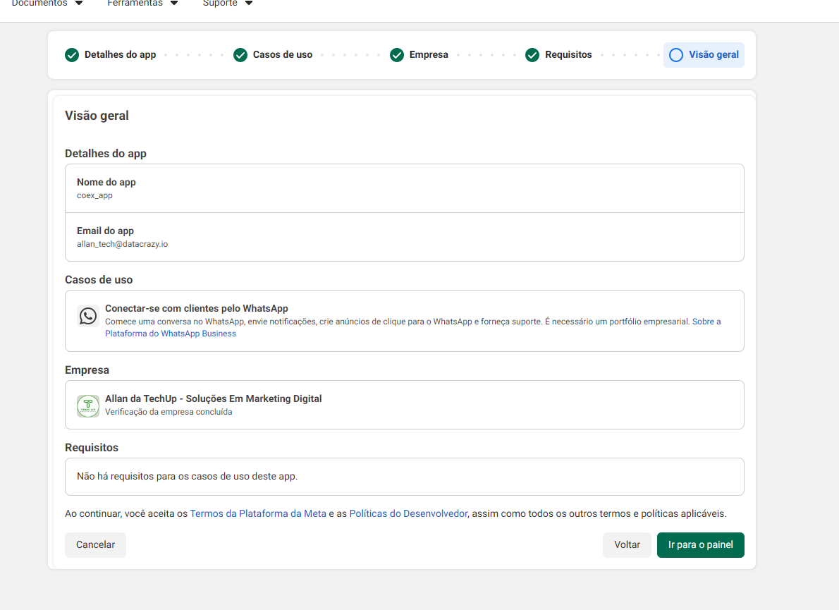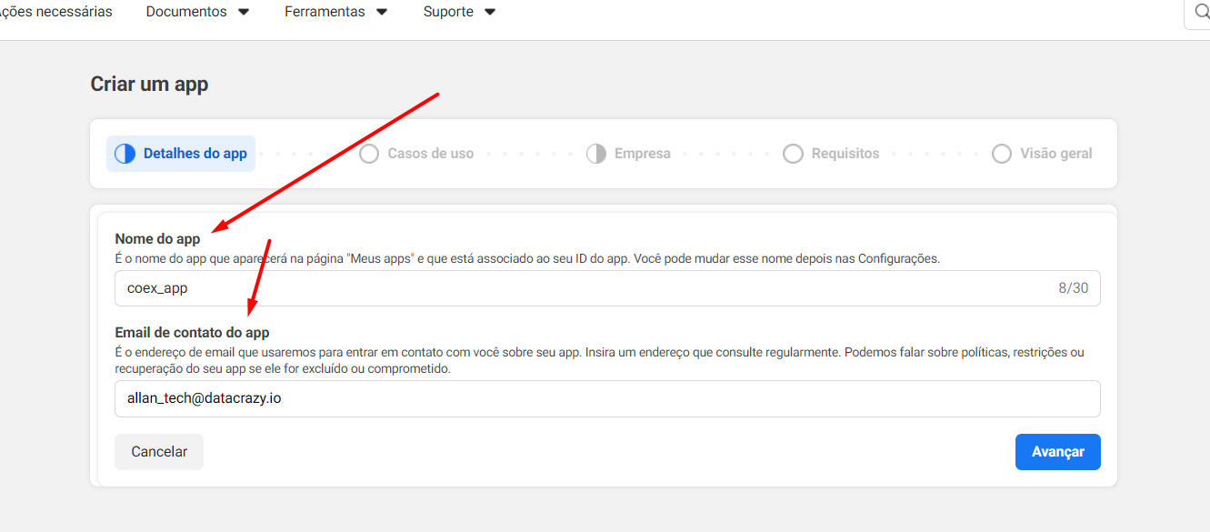 Name the APP and add the official contact email for internal use with/by META. After filling it out, continue. See image 5.