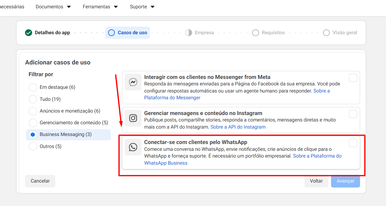 On the next page we choose the use case for this app. For this case, we used 'Connect with customers through WhatsApp'. Continue! See Image 6.