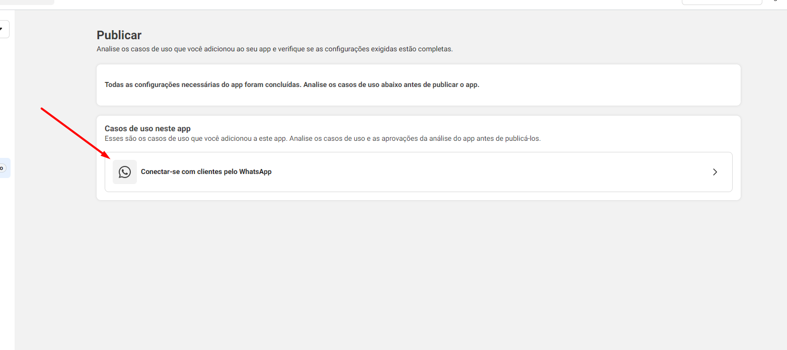 Again in the 'Publish App' menu, we have this screen, we’ll click on Connect with customers via Whatsapp See Image 10.