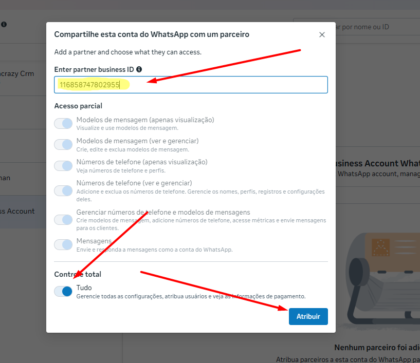 Imagem 1B - Ve a cuentas de whatsapp → selecciona tu cuenta → mira cuál es fijándote en phone number, encontrando la correcta, ve a partners, al lado de phone number.