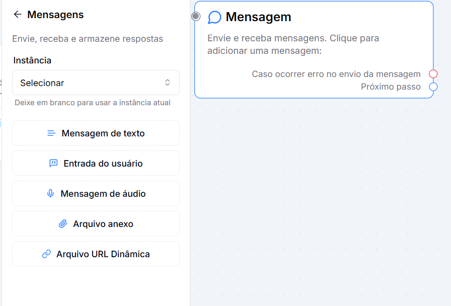 Insira o bloco de mensagem para criar o conteúdo do disparo.