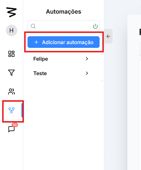 Clique em "Adicionar Automação" para iniciar um novo fluxo.