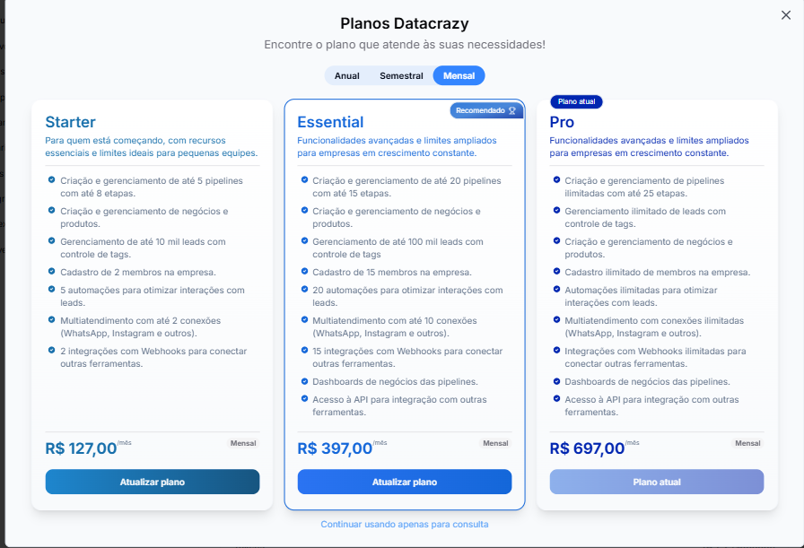 Com esses passos, você terá configurado sua conta, cadastrado sua empresa e realizado o pagamento para utilização completa do CRM Datacrazy.