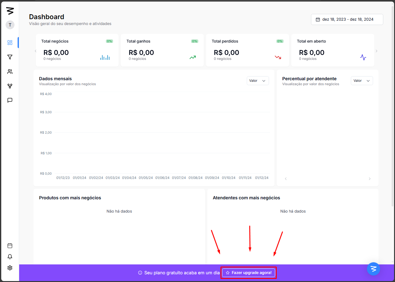 Após fazer login, clique no botão de "Fazer upgrade agora!” que aparece na tela inicial.
